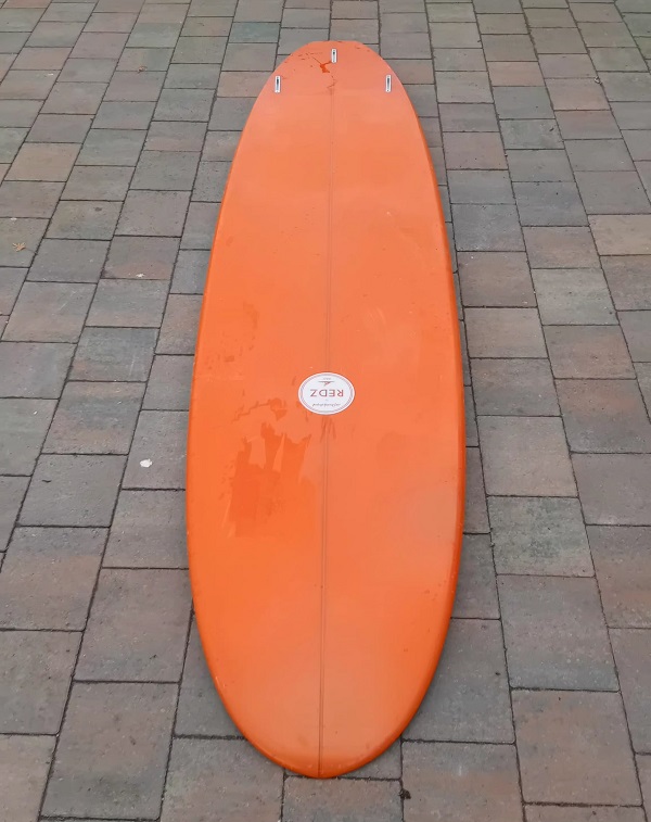At 8ft2″ and 54.2ltrs it has loads of length and volume even for the biggest surfer. It came to us as a Trade in for a New board, we have repaired any damage with care and it is now fully watertight and ready for the sea.